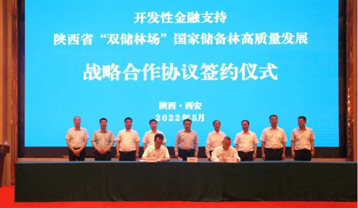 5月24日,陜西省國家儲備林體系建設推進會在西安召開,交流學習成功經驗,分析研究當前形勢,并就加快推進以“雙儲林場”為主體的國家儲備林體系建設進行再安排、再部署。省林業局黨組書記、局長黨雙忍,國家開發銀行陜西省分行黨委書記、行長成永旭,代表雙方簽署了《開發性金融支持陜西省“雙儲林場”國家儲備林高質量發展戰略合作協議》,明確就“雙儲林場”規劃編制和修訂,投融資模式和金融產品開發等方面開展深度合作,推動建立陜西省“雙儲林場”建設市場化投融資體制機制,進一步強化開發性金融支持力度,全面推進“雙儲林場”國家儲備林高質量發展。